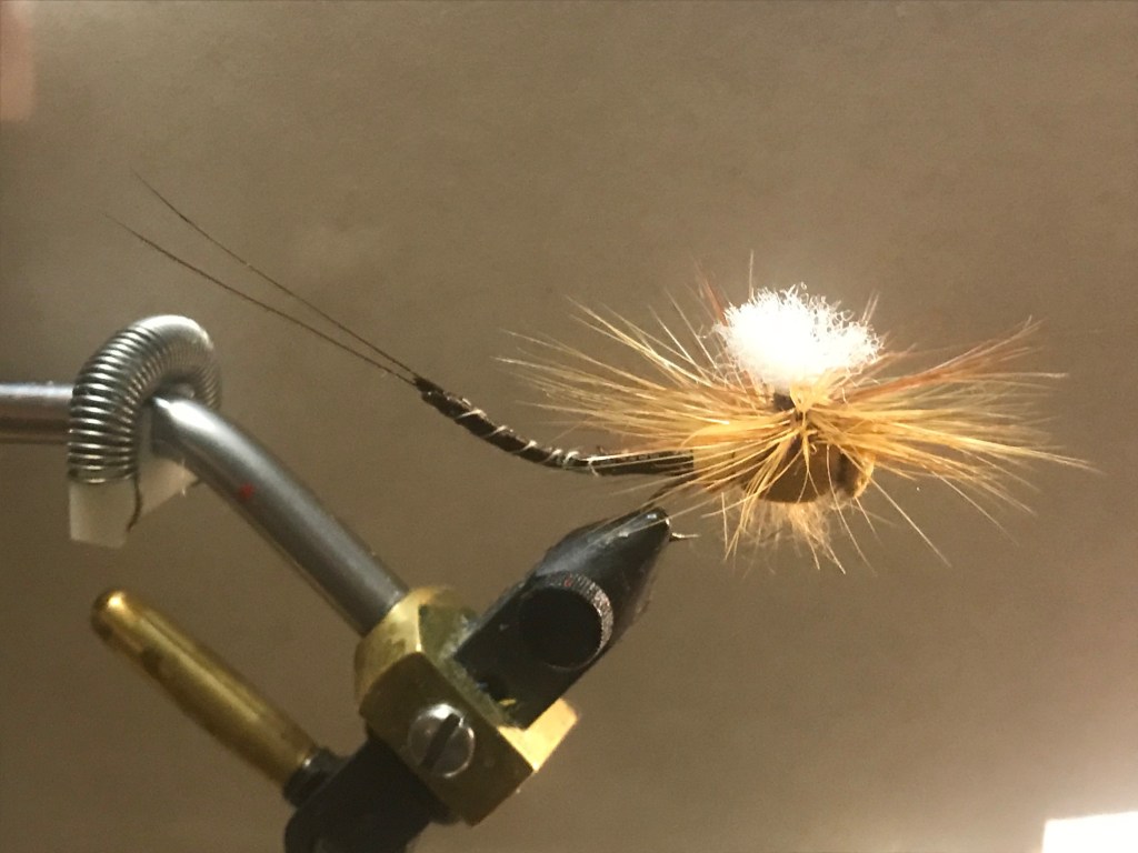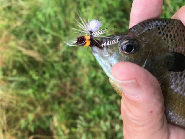 Even though the waves were pounding and a steady rain was falling, the bream were waiting on the bugs and were very willing. I put a nice mess in the basket and put the rest back. They seemed to particularly like my deer hair parachute (below).