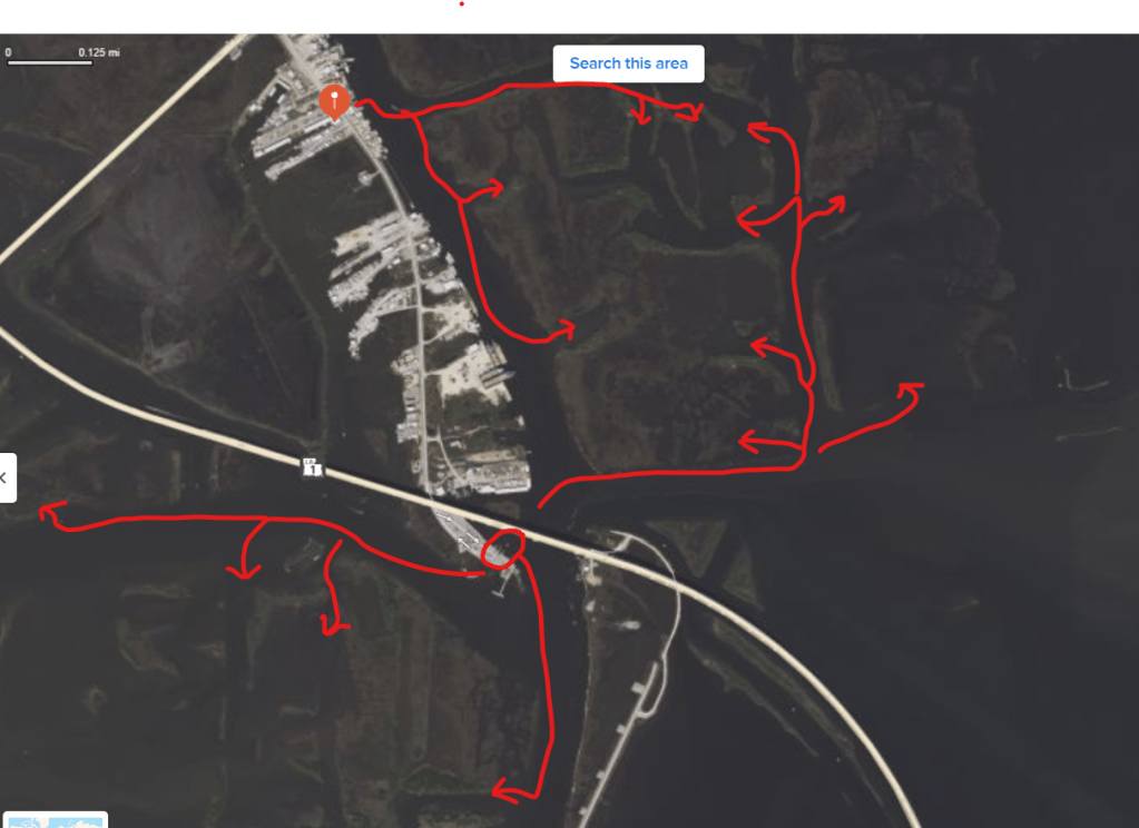 There is a toll to go over the causeway to Fourchon, which is the piano shaped highway below.