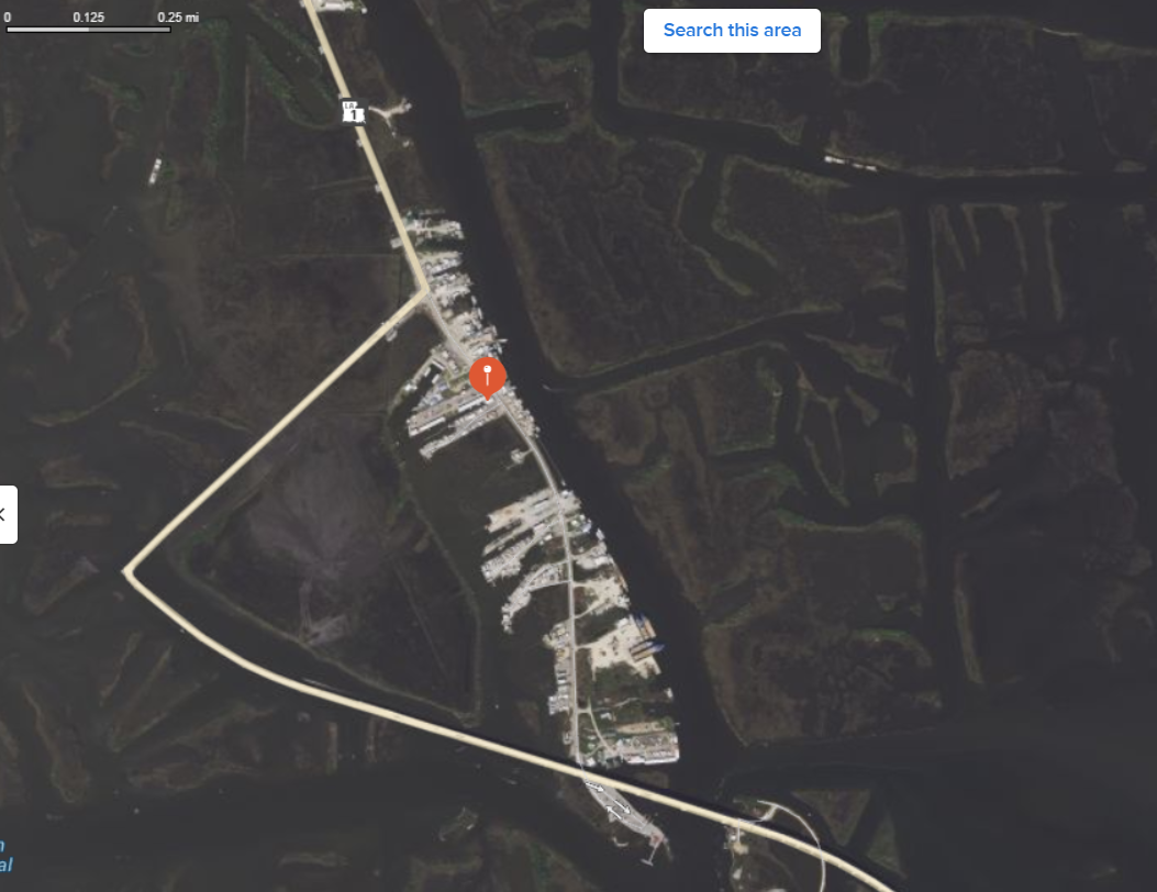 The orphaned piece of Hwy 1 is to the left of hwy 1, accessed by driving from Leeville to Fourchon over the causeway and hanging a right.